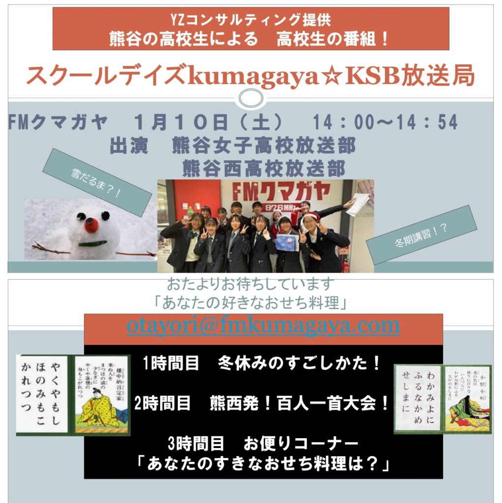 スクールデイズkumagaya☆KSB放送局! 1月10日(土)14:00~