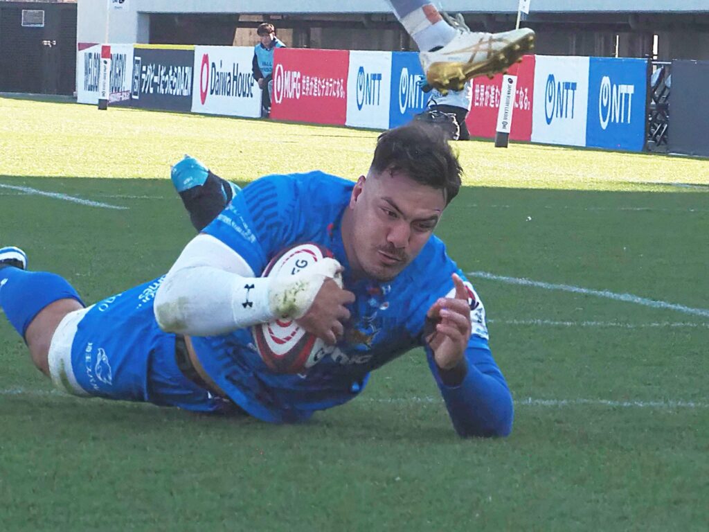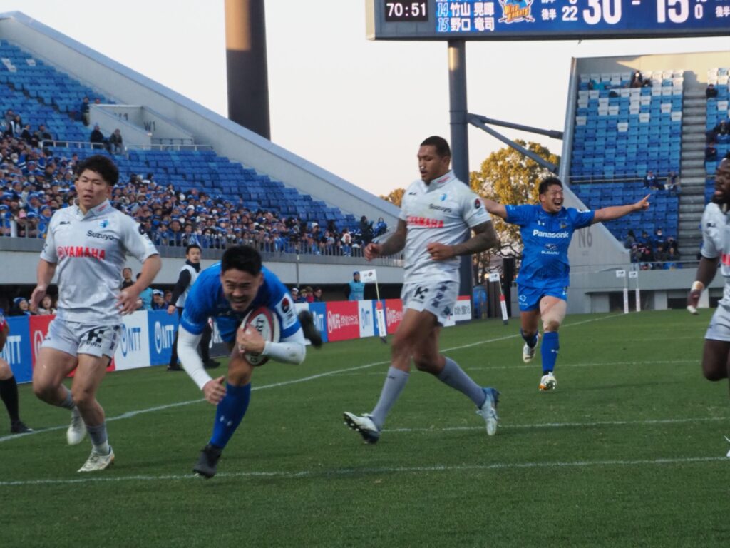 後半22分にもペナルティーからのラインアウトでチャンスをしっかり活かし、数フェーズを経て右サイドに展開していた埼玉FLラクラン・ボーシェーへSO山沢京平のロングパスを受けトライ30ー15に。