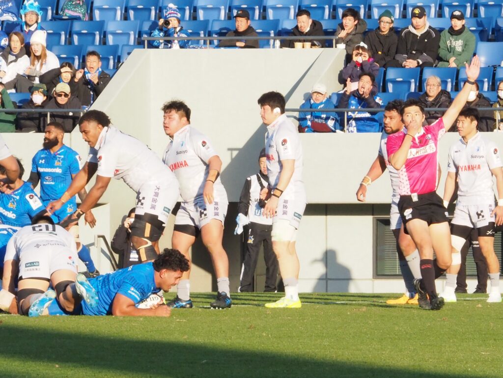 埼玉の持ち味はまだまだ続き、後半15分メインスタンド側からのラインアウト、逆サイドへの流れるようなパス回しからライン際をサイクロンことWTBマリカ・コロインベテの激走をサポートしていた、今回素晴らしい試合運びを見せている埼玉SH李 錦寿がパスを受けリーグワン初トライで20-15と逆転。