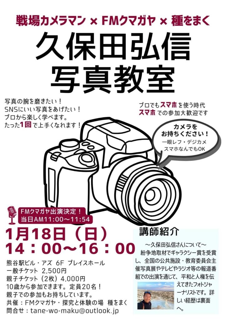 1月18日(日) 14:00~16:00、戦場カメラマンでフォトジャーナリストの久保田弘信さんの写真教室を開催します。